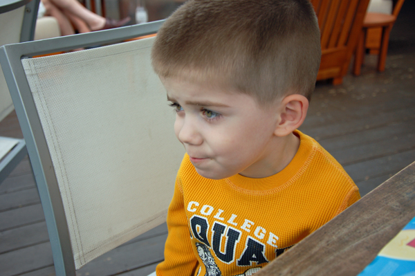 The lunch lines didn't diminish so we finally braved the lunch line. Mike took the kids to a table while I waited in a really, really long line. Right when I was at the front waiting to get the last of our entrees, Mike came to find me and told me we had to leave. Nicholas had dumped lemonade on himself and was having a complete meltdown. He was crying and saying he was sorry, and wanted to be changed. We haven’t had to change the kids while we were out in ages, so we had no spare clothes. So I abandoned lunch at the front of the line and we went back to the hotel.